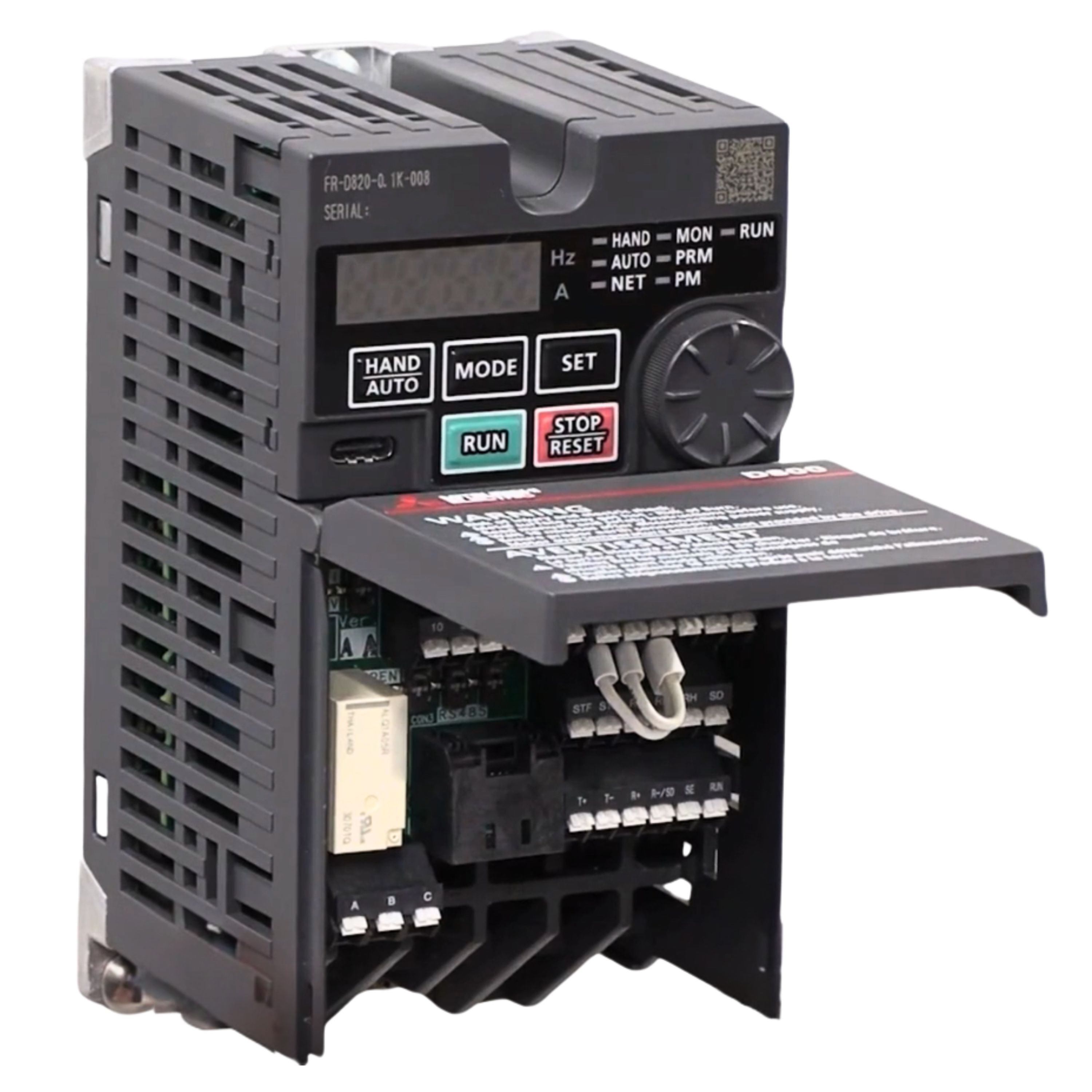 The D800 features two new features to help speed up installation. First is that the terminals are now covered by a flip-type front cover, meaning no more screws are necessary to connect your power. They also have transitioned to spring clamp terminals, making it easier than ever to get the drive wired up.